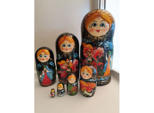 Старинная русская игрушка принесет радость, вдохновение и пользу. Взрослый оценит эту матрешку, как символ верности и любви. Ребенок во время игры развивает мелкую моторику рук, рассматривая сказочные картинки, учится произносить слова, запоминает цвета. В роспись каждой матрешки вложила частичку своей души, согрела теплом своих рук, добавила радость и улыбку.