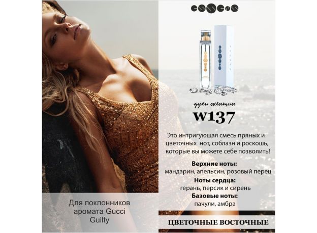 W137 эквивалент - для любителей аромата Гуччи Гилти. Аромат: Цветочный, Восточный