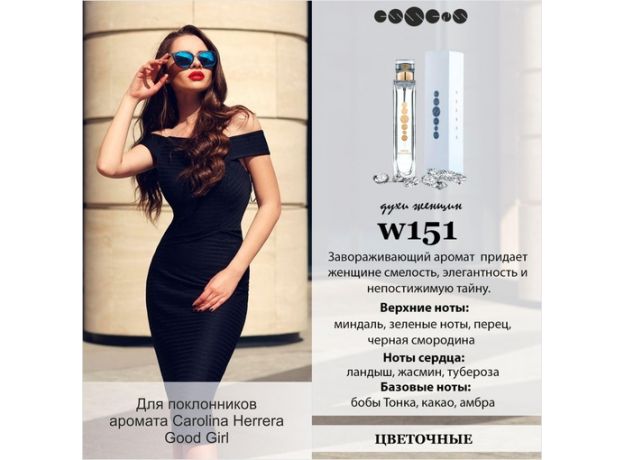 W151 эквивалент - для любителей аромата Каролина Эррера Гуд Гёл. Аромат: Цветочный