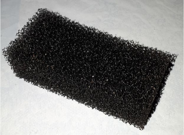 На днях наткнулась на забытую черную губку для фильтра для аквариума. Купила, а размер не подошёл. Выбросить жалко. Размер губки 8х3,5х3 см. Губка не очень крупная, но и не мелкая, какая обычно бывает в фильтрах.
