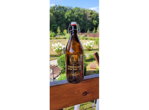 Бутылка с бугельной крышкой. Брендовые из под пива "Ремесленное". Ёмкость 1 литр. Подходит для самогона, пива, кваса.