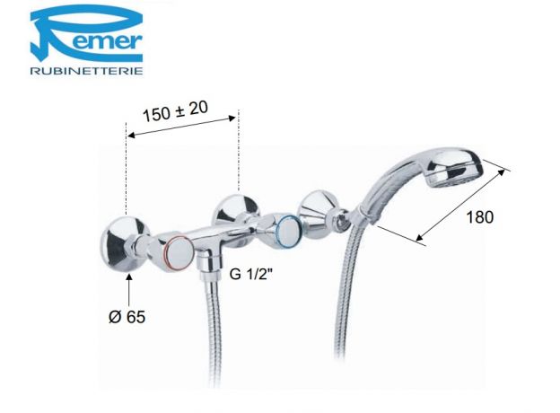 Remer Y-YG 39Y смеситель для душа цвет хром. С одним рычагом. В комплекте с лейкой, шлангом и кронштейном.