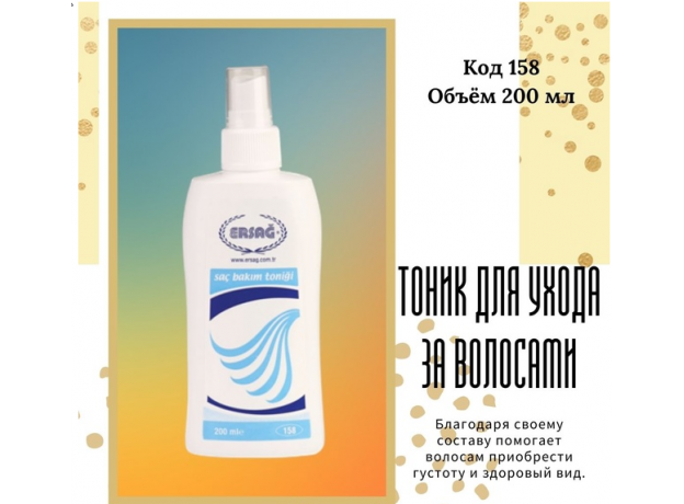 Тоник помогает волосам выглядеть пышными и здоровыми. После использования НЕ СМЫВАТЬ. Рекомендуется использовать наш продукт после мытья волос с Биошампунем от Ersag, что помогает ускорить рост волос и остановить их выпадение.