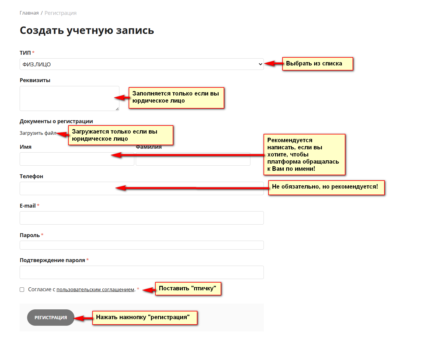 Регистрация нового потребителя.