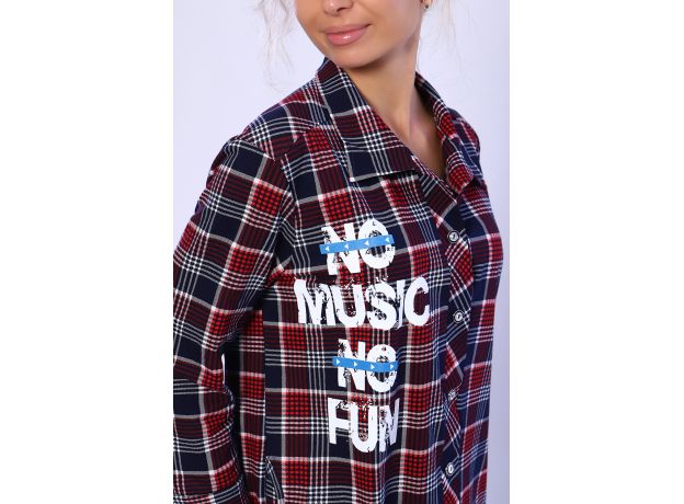 Туника - рубашка свободного кроя. Отложной воротник, спереди застежка на пуговицы и петли с планкой, рукава 3/4 с манжетами, по бокам вшивные карманы, спинка на кокетке, наличие модного принта.