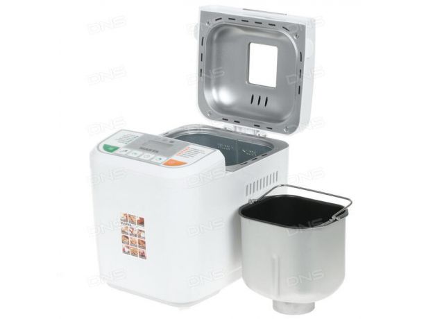 Мощность: 550 Вт; Максимальный вес выпечки: 500 г; Специальные программы: бездрожжевая выпечка, варенье, безглютеновая выпечка, ржаной хлеб, французский багет, пшеничный хлеб; Дополнительные функции: выбор цвета корочки, таймер, замес теста; Форма выпечки: буханка; Поддержание температуры: есть, до 1 ч; Количество программ выпечки: 12; Пользовательский режим: есть.