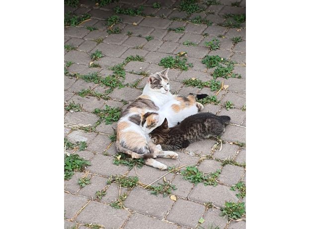 Кошка очень плодовитая. В кадр попали только двое котят, а по территории бегают еще десяток.