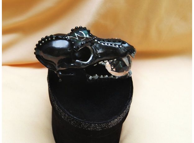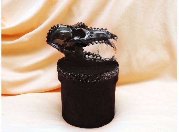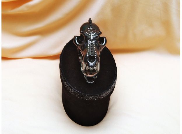Все амулеты создаются на 3D-принтере, с дальнейшей ручной постобработкой. Каждый амулет уникален,т.к. полностью повторить все невозможно. В пасти эко-череп держит хрустальную каплю и задекорирован стразами, что при направленном освещении придает мистичности и загадочности обстановке.
