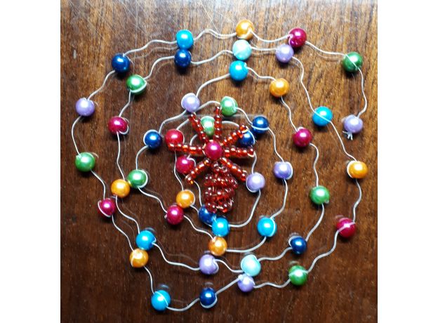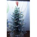 Голубая ель из бисера, украшенная разноцветными бусинами и яркой лучистой звездой на макушке (бусины и звезда в подарок), привнесет в ваш дом нотку новогоднего настроения. Высота дерева около 30 см, диаметр кроны нижних ветвей до 27-28 см. Ветви гибкие, собраны из меланжированного бисера, создающего оттенок голубой ели. Возможно формировпние кроны по своему усмотрению. Разноцветные бусины, съёмные, их можно расположить так, как вам хочется. На макушке, также съёмная, имеется лучистая звезда краснобордового цвета. Ель установлена в небольшой ёмкости и присыпана у основания прозрачным стеклярусом, имитирующим снег. Основание и стеклярус покрыты лаком. При желании, ель можно освежить под прохладным душем, после чего стряхнуть с нее оставшиеся капли воды.
