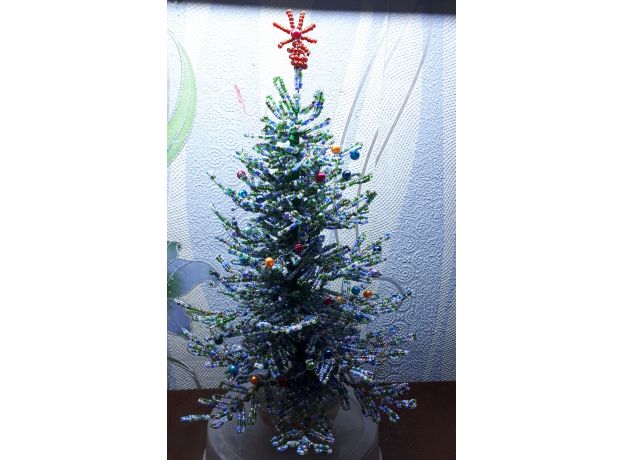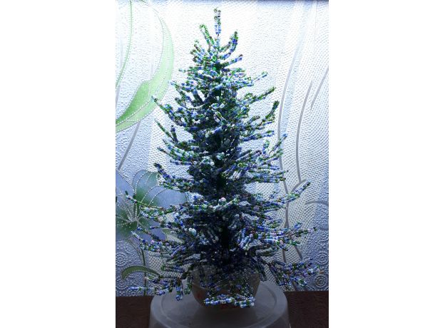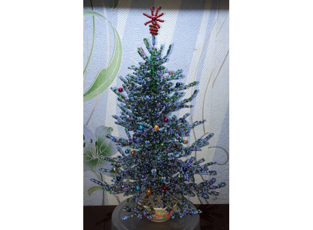 Рукоделие: ель голубая из бисера