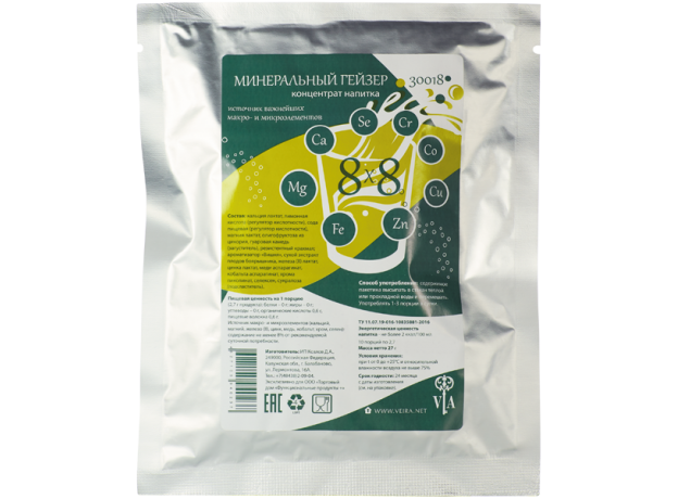 Источник макро- и микроэлементов (кальций, магний, железо (II), цинк, медь, кобальт, хром, селен): содержание не менее 8% от рекомендуемой суточной потребности.