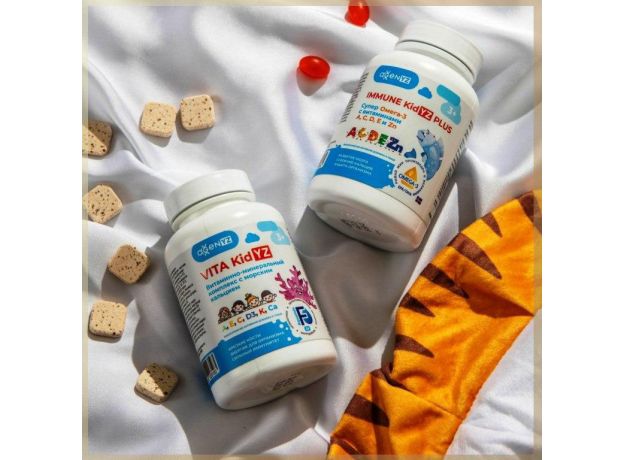 ✨Иммун Кидиз Плюс — комбинация ПНЖК Омега-3 и витаминов А, С, Д, Е и цинка. Комплекс предназначен для укрепления иммунной системы, поддержания правильного развития мозга и формирования костного скелета.