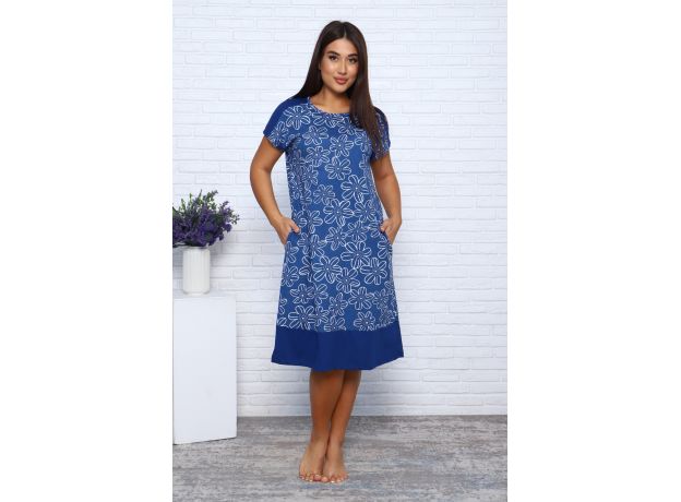 053 Туника женская синий, цветы/58