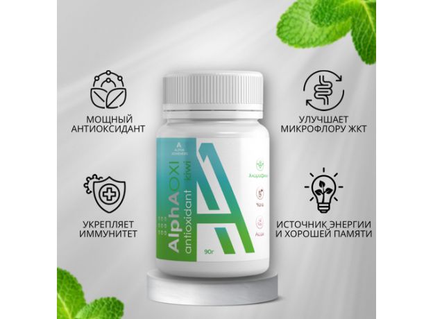 AlphAOXI antioxidant /kiwi (АльфАОКСИ антиоксидант со вкусом киви). Мощный антиоксидант, улучшает микрофлору ЖКТ, укрепляет иммунитет, является источником энергии и хорошей памяти.