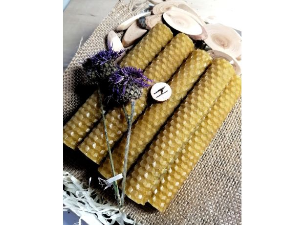 В набор входят 9 жёлтых свечей с нанесеной руной Халагаз, четверговой солью и маслом можжевельника.