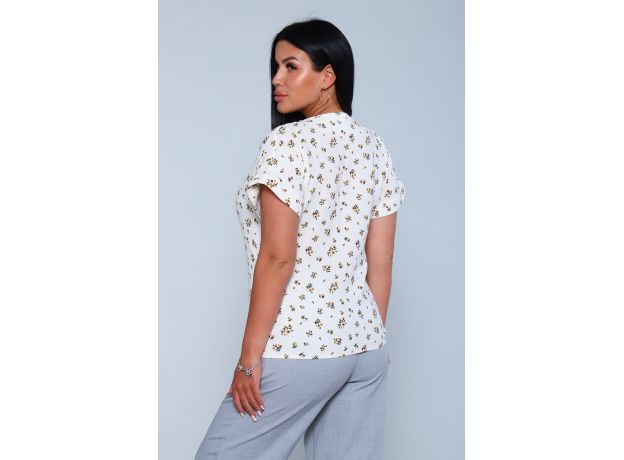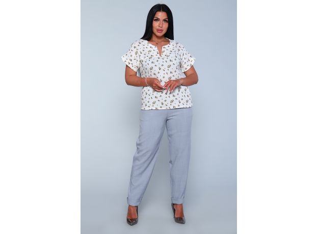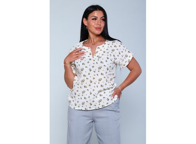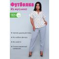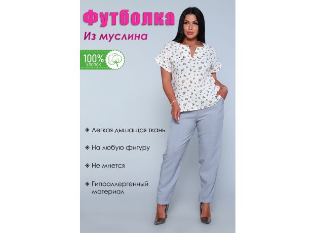 Настоящая находка для любителей натуральных тканей - футболка из муслина. Легкая, воздушная и не мнущаяся ткань позволит комфортно себя чувствовать в летнюю жару на работе и на отдыхе. Полуприлегающий силуэт, округлая горловина с V-образным вырезом, спущенный рукав с небольшим манжетом, на полочке кокетка.