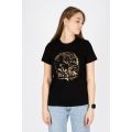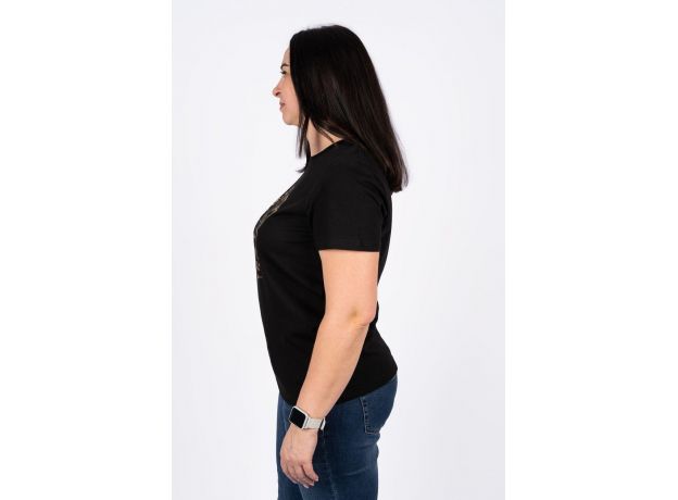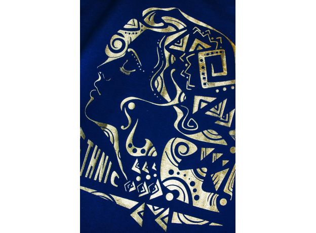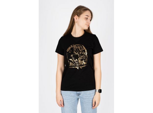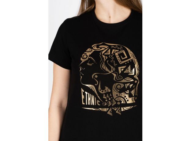 Необычный и завораживающий принт этнической женщины не оставит никого равнодушным. Это уникальное изделие позволит выразить свой внутренний мир и собирать модные образы на каждый день. Изделие выполнено из лёгкого трикотажа. Тонкий материал пропускает воздух и позволяет коже дышать. Прямой силуэт, втачной рукав, горловина круглая, обработана воротником из кулирки. Низ изделия и низ рукава обработан швом вподгибку. На полочке принт фольгирование.