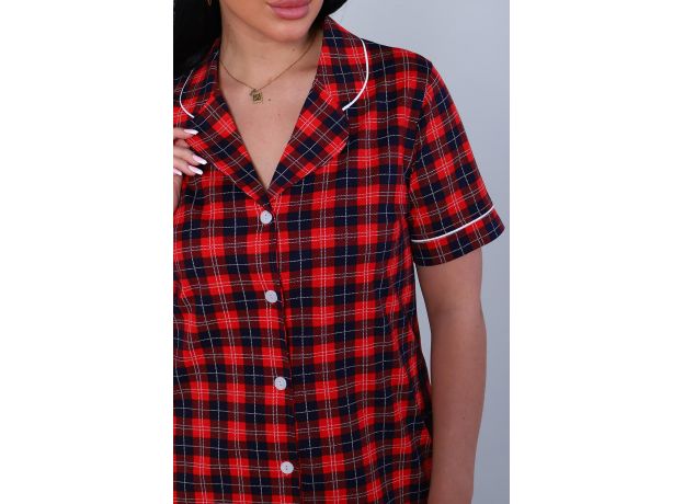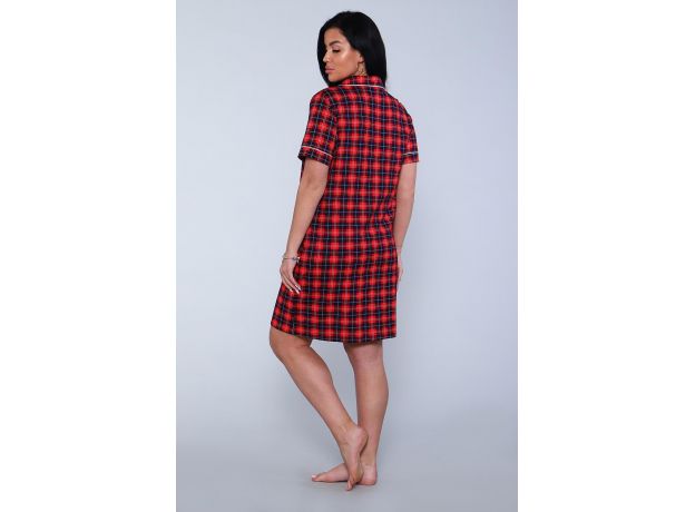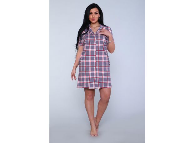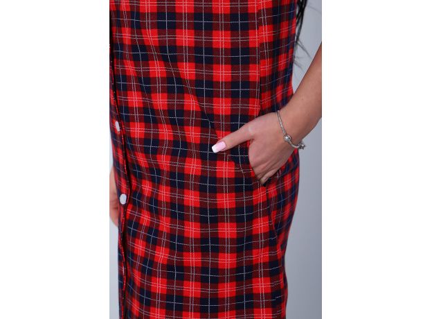 Женский халат-рубашка свободного кроя в клетку на пуговицах длиной выше колена с коротким рукавом. Воротник фигурный, рубашечного типа, обработан кантом. Манжет рукава также обработан кантом контрастного цвета. Для удобства халат-рубашка имеет два кармана в боковых швах со скошенным входом. Модель выполнена из высококачественного 100% хлопка, на ощупь ткань напоминает фланель, что создает комфорт и уют при носке. Большой выбор приятных расцветок, принт ткани в виде крупной клетки. Можно носить дома как халат-рубашку или на улице как платье-тунику. Подойдет медикам, в качестве униформы. Любителям носить одежду в обтяжку можно брать на размер меньше. Подойдет на любую фигуру, скроет недостатки. Отлично смотрится на беременных. Широкий размерный ряд с 44 по 62. Отличный подарок любимым на праздник и по любому поводу!