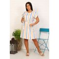 Туника женская, полуприлегающего силуэта с коротким рукавом без карманов, на поясе, с круглым вырезом горловины. Длина изделия по колено.