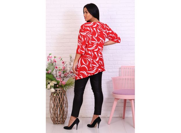 Туника свободного кроя. V-образная горловина, украшена декоративными пуговицами. Рукав 3/4. А-силуэт и фигурный низ изделия делает тунику легкой и привлекательной. Эта туника подойдет каждой женщине и поднимет настроение.