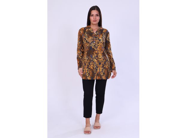 Туника прямого кроя, воротник-стойка, рукав длинный, низ округленный. Туника из теплой мягкой ткани будет согревать в холодное время года.