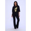Туника женская с боковыми рельефами, переходящими в разрезы шлицы. Незаменимая вещь в гардеробе каждой модницы. Рукав цельнокроеный, спущенный, летучая мышь, 3/4. На полочке туники выполнена печать которая прекрасно дополняет образ, придавая изделию особый шик. Крой туники летучая мышь из футера - отличное решение на каждый день! Свободный крой, широкая пройма рукава - модель отлично садится на любую фигуру. Туника прекрасно сочетается с брюками, шортами, юбками, джинсами. Стильно, красиво и удобно!