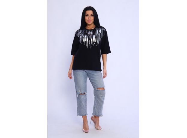 Туника женская с боковыми рельефами, переходящими в разрезы шлицы. Незаменимая вещь в гардеробе каждой модницы. Рукав цельнокроеный, спущенный, летучая мышь, 3/4. На полочке туники выполнена печать которая прекрасно дополняет образ, придавая изделию особый шик. Крой туники летучая мышь из футера - отличное решение на каждый день! Свободный крой, широкая пройма рукава - модель отлично садится на любую фигуру. Туника прекрасно сочетается с брюками, шортами, юбками, джинсами. Стильно, красиво и удобно!