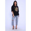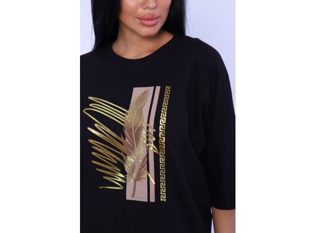 Туника женская с боковыми рельефами, переходящими в разрезы шлицы. Незаменимая вещь в гардеробе каждой модницы. Рукав цельнокроеный, спущенный, летучая мышь, 3/4. На полочке туники выполнена печать которая прекрасно дополняет образ, придавая изделию особый шик. Крой туники летучая мышь из футера - отличное решение на каждый день! Свободный крой, широкая пройма рукава - модель отлично садится на любую фигуру. Туника прекрасно сочетается с брюками, шортами, юбками, джинсами. Стильно, красиво и удобно!