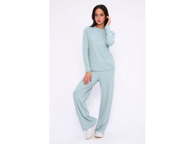 Элегантный костюм свободного силуэта из трикотажного полотна - "лапша". Лонгслив и брюки на резинке.