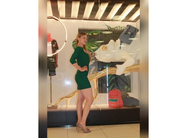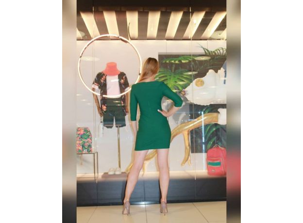 Зеленое короткое платье с элементами тату-иллюзия в зон