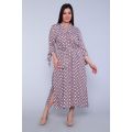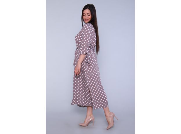 Платье - халат - абсолютный must have Вашего гардероба. Благодаря специальной конструкции такая модель платья внешне стройнит и делают его обладательницу еще более привлекательной. Значение имеет V-образный вырез, который добавляет выразительность. Легкое платье; V-образный вырез горловины, ; Рукав втачной короткий украшенный декоративной отделкой в виде завязывающихся лент; По переду застегивается на пуговицы; Платье завязывается на пояс;