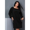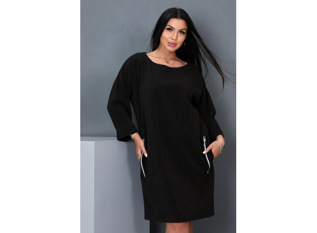 Платье женское прямого силуэта, до середины колена, округлый воротник, рукав 3/4. Накладные карманы с декорированной молнией. Удобно и практично.