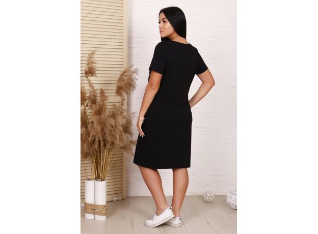 Платье прилегающего силуэта с анималистическим принтом на полочке. Горловина округлая, в боковых швах карманы, по спинке центральный средний шов. Модель выполнена из высококачественного трикотажного полотна
