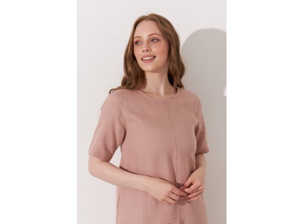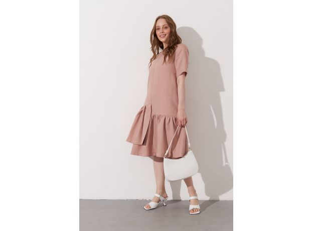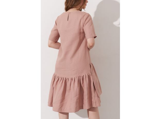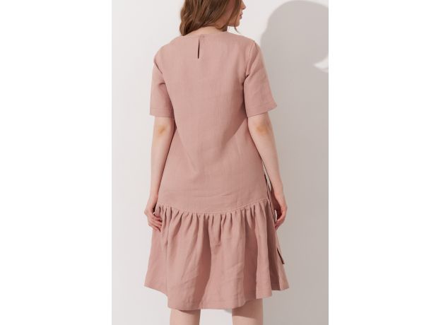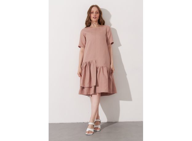 Свободное платье из льна очень выгодно подчеркнет достоинства любой фигуры, вертикальные отстрочки по переду визуально вытянут, делая ее стройнее.