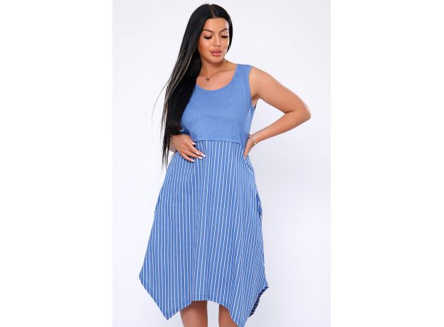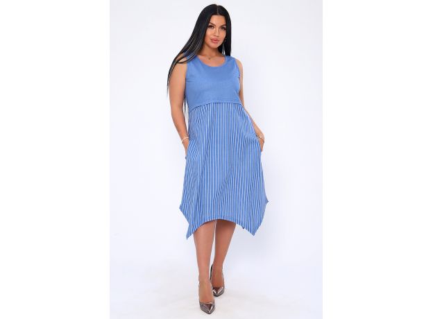 Женский летний сарафан - платье А - силуэта с завышенной талией и небольшой декоративной складкой на кокетке переда с боковыми карманами в шве. Низ изделия выполнен с угловыми вырезами. Сшит из трикотажного полотна, 100%-го хлопка, что позволяет телу дышать и чувствовать себя комфортно в жаркий день. Длина изделия ниже колена. Удобный сарафан, приятный к телу, не стесняет движения. Любителям носить одежду в обтяжку можно брать на размер меньше. Подойдет на любую фигуру, скроет недостатки. Отлично смотрится на беременных. Приятные и стойкие цвета ткани. Широкий размерный ряд 44-56. Для дома и дачи, для отдыха и прогулок, в отпуск, на море. Отличный подарок любимым девушкам и женщинам!