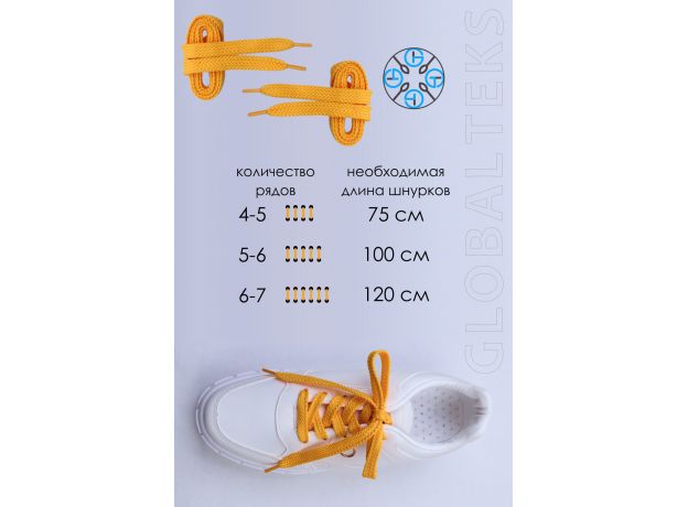 Шнурки для обуви – это универсальный аксессуар, который необходим в каждому. Длина - 100 см, ширина 1 см. Отлично подойдут на кроссовки, кеды, ботинки, полуботинки, футбольные бутсы можно завязать на 5-6 пар отверстий. Наши обувные шнурки не развязываются при ходьбе и беге. Эглеты (наконечники) пластиковые.