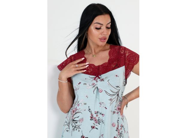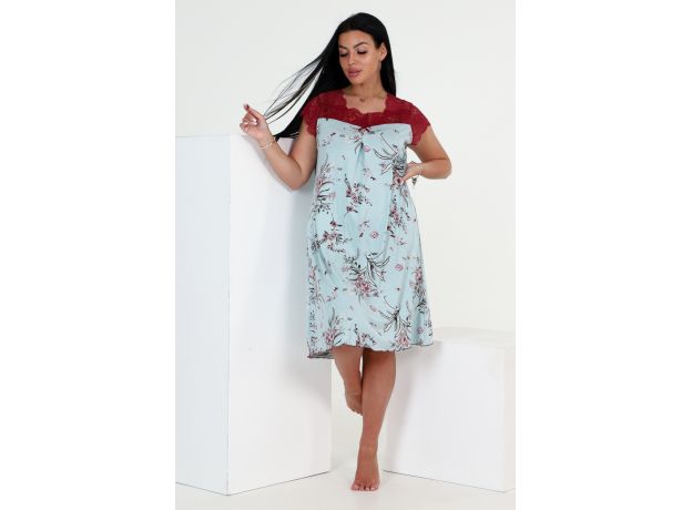 Ночная сорочка из вискозы с добавлением лайкры. Модель очень удобная и комфортная. Покрой свободный. Вырез горловины отделан мягким кружевом и атласной лентой. Маленький рукав не сковывает движений.