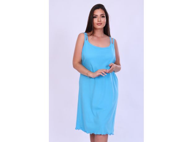 Классическая модель трикотажной сорочки, выполнена из трикотажного полотна. Модель свободного силуэта на двойных тонких бретелях. Низ сорочки обработан спец машиной – краёвка.