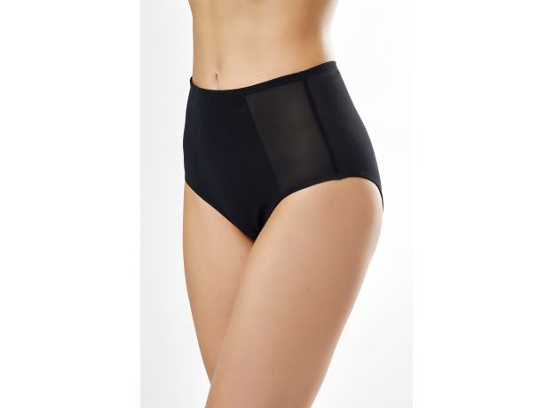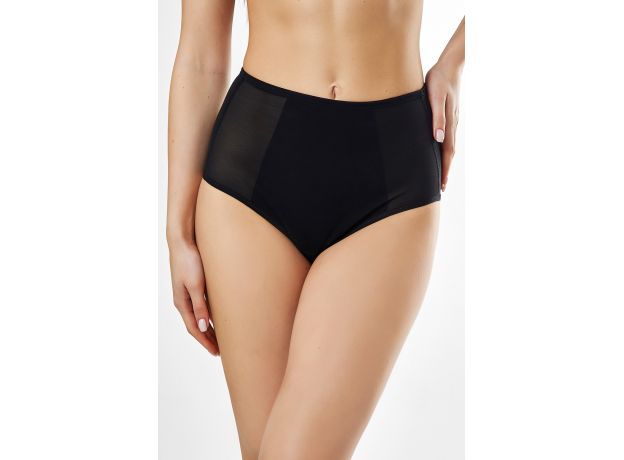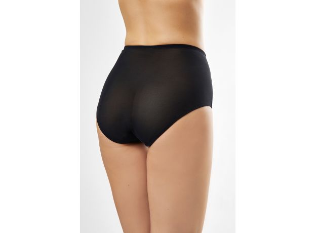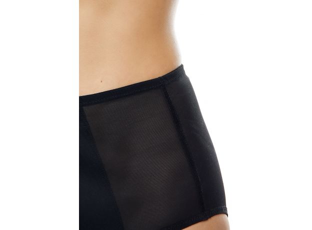 Женские трусики бразилиана, выполненные из эластичного сетчатого полотна. Линия талии завышенная. Верхний и нижние срезу трусиков обработаны тесьмой. Очаровательная модель!
