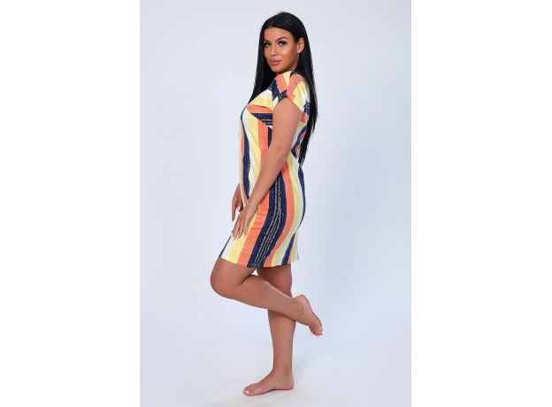 Туника из кулирки с цельнокроеным коротким рукавом на манжете. Перед и спинка имеет асимметричный крой, имеется карман.
