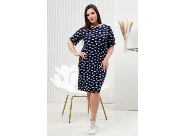 Женская туника в стиле oversize имеет неповторимый свободный крой. С принтом короны выполнена из 100% натурального хлопка. Платье - туника с коротким рукавом выполнено в практичном цвете.