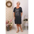 Туника женская из кулирного полотна, прямой силуэт, горловина круглая, рукав короткий, втачной, в боковых швах внутренние карманы, низ изделия обработан на плоскошовной машине, на полочке принт.