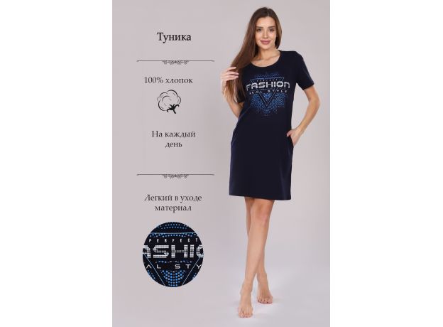 Туника женская выполнена из 100% хлопка, благодаря чему модель удобна в носке и легка в уходе. Туника - прямого кроя, горловина круглая, рукав короткий, в боковых швах внутренние карманы, на полочке принт. Данная модель отлично подойдет на каждый день.