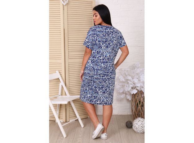 Туника женская из набивного кулирного полотна, прямой силуэт, горловина круглая, рукав короткий, втачной, в боковых швах карманы, низ изделия обработан на плоскошовной машине, на полочке принт.