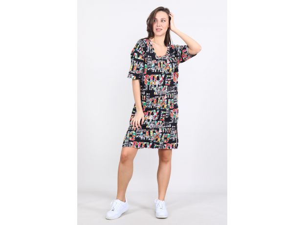 Туника женская, отличный вариант для дома и отдыха. Яркий принт подчеркнет вашу индивидуальность. Снизу по бокам присутствуют разрезы. Свободный крой не сковывает движения, а материал очень приятный к телу.