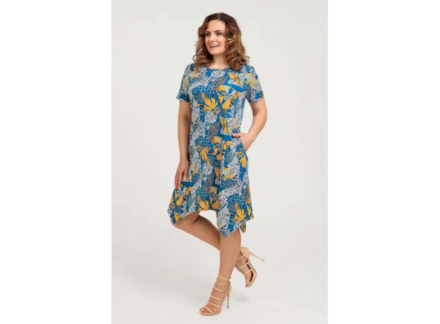 Туника женская приталенного силуэта. Горловина обработана кантом из основной ткани. Низ углообразный. Легкое, свободное. Прекрасно подходит для отдыха и дома. Привлекательный силуэт придаст вам шарм. Карманы боковые