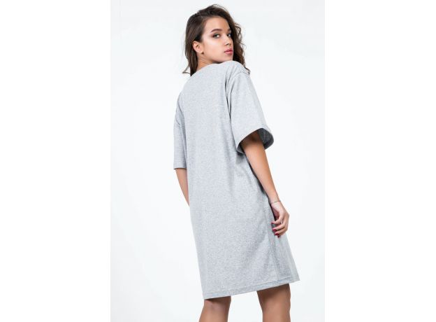 Платье-туника оверсайз с широкими рукавами. Горловина округлой формы обработана качественной рибаной с лайкрой, поэтому после стирки не растягивается. Оригинальный принт на полочке в виде стилизованного леопарда привлекателен именно в своей простоте. Фасон подходит для всех типов фигуры. Принт с серебряным глиттером. Длина рукава указана от основания шеи.
