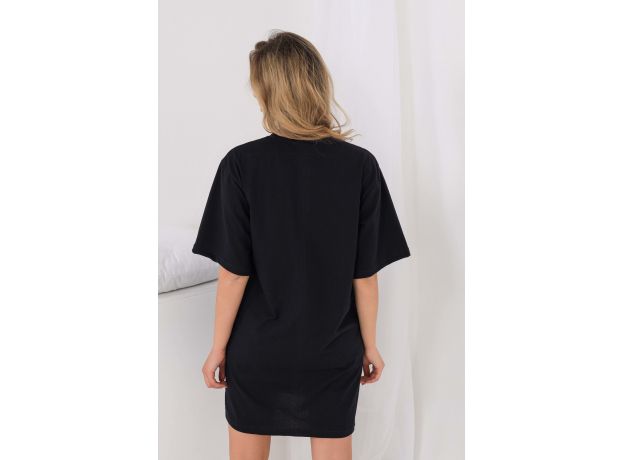 Платье-туника свободного кроя с широкими рукавами. Фасон подходит для всех типов фигуры. Горловина округлой формы обработана втачной планкой. Длина рукава указана от основания шеи. Принт изображает панораму небоскрёбов Москва-Сити.