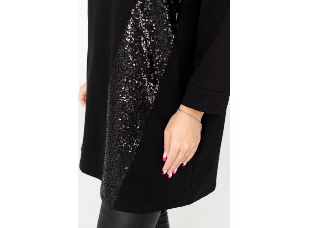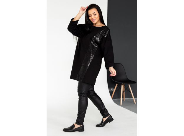 Туника обладает уникальным дизайном. Изделие прямого силуэта без акцентов на бёдрах или талии, рукав ¾, стильная вставка из пайеток на полочке. Мягкая эластичная ткань высокого качества подстраивается под фигуру. Стильная туника впишется в офисный дресс-код и станет верным спутником для прогулок или непринуждённых встреч.