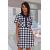 Туника женская в клетку с коротким рукавом, накладными карманами, застежкой по переду и воротником.